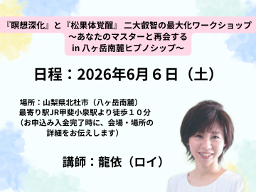 6/6『瞑想深化』と『松果体覚醒』 二大叡智の最大化ワークショップ 〜あなたのマスターと再会する in 八ヶ岳南麓ヒプノシップ〜 講師:龍依(Roy)